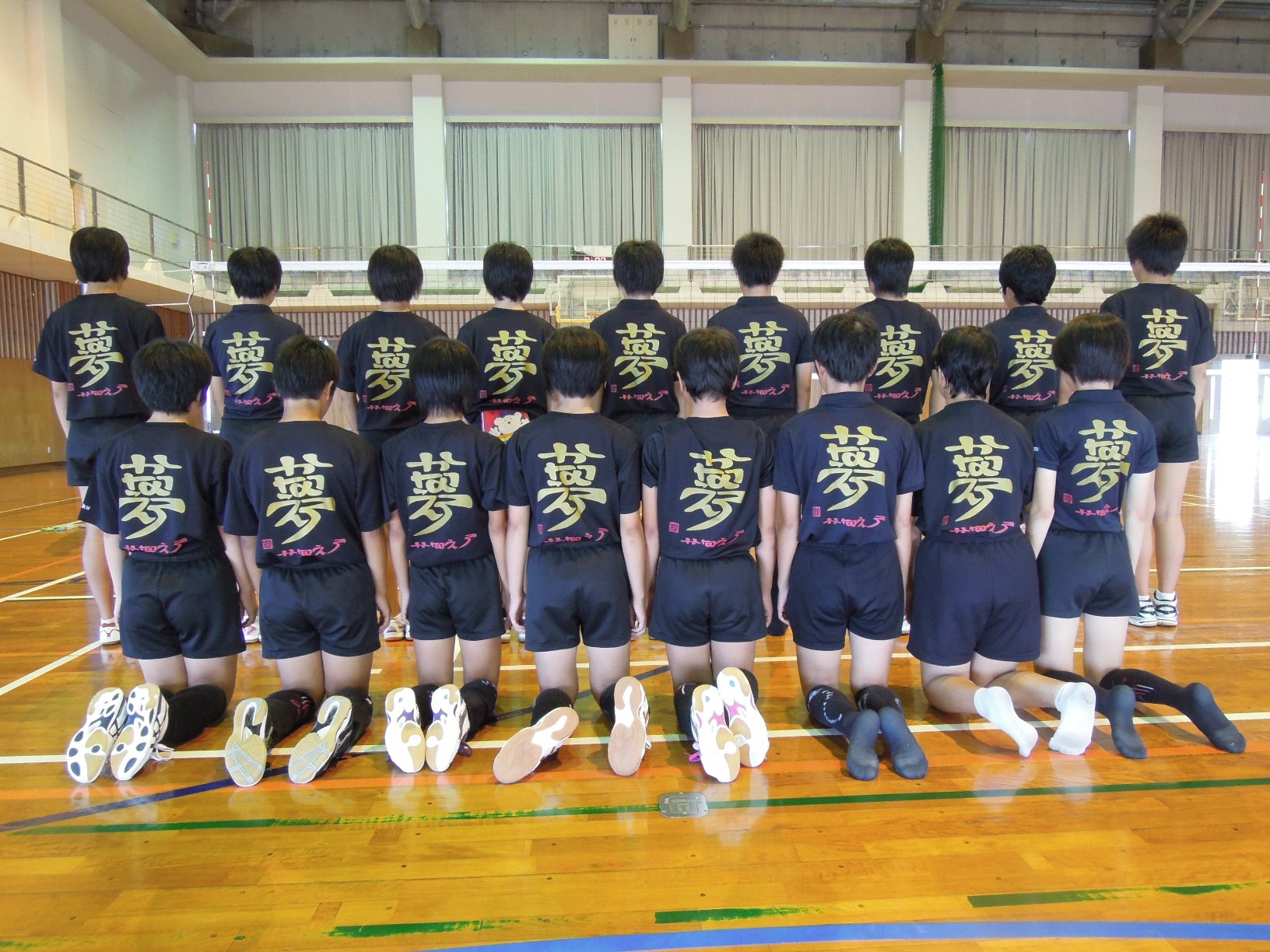 和泊中女子バレー部のユニフォーム背面に「夢・かなえろ」