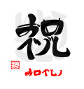 漢字「祝」の文字を「おめでとう」のひらがな5文字メッセージの構成でデザインした筆文字風アイデア文字(ことば漢字)を作りました。